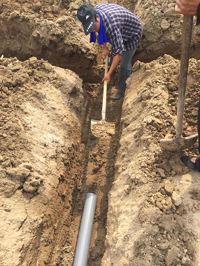 2017年09月19日,公司派技术人员至长葛市某区进行施工指导,规格PVC给水∮110、90,主要向其讲解管材倒角、管材胶粘面应擦拭干净及溢出胶水应擦拭干净等注意事项、管材连接24小时后始可通水使用及通水试压前应先排气,确保后续通水无异常。
