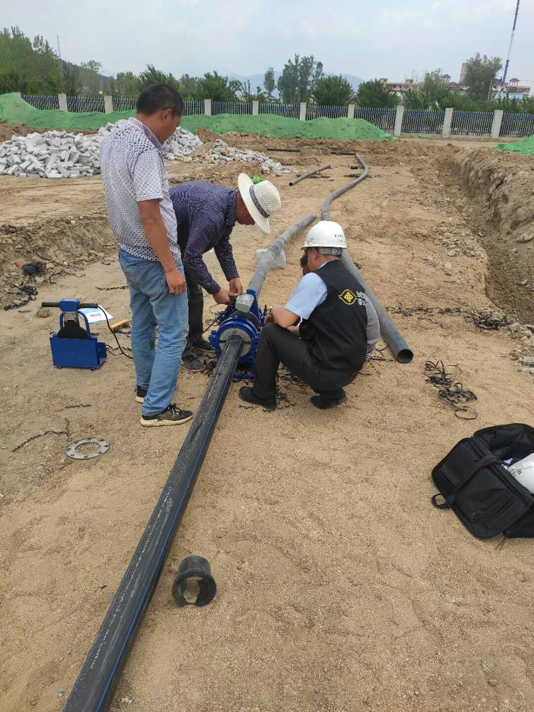 2020年05月29日公司派员至南阳某地施工指导,该项目外圍供水管网采用PE给水110*6.6*1.0Mpa管材,现场讲解焊机温度设定、错边率、加热时间、冷却时间等PE施工注意事项及操作规范事项,确保后续通水正常。