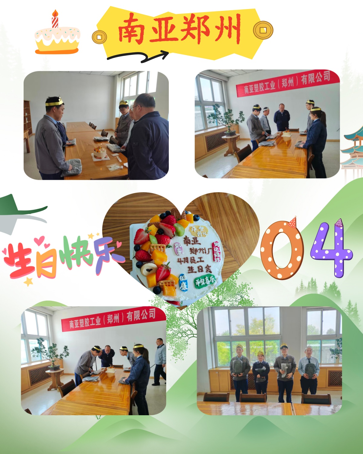 四月芳菲,暖意融融。为传递企业关怀,凝聚团队力量,南亚塑胶工业(郑州) 有限公司为 4 月生日的员工举办了温馨的集体生日会。